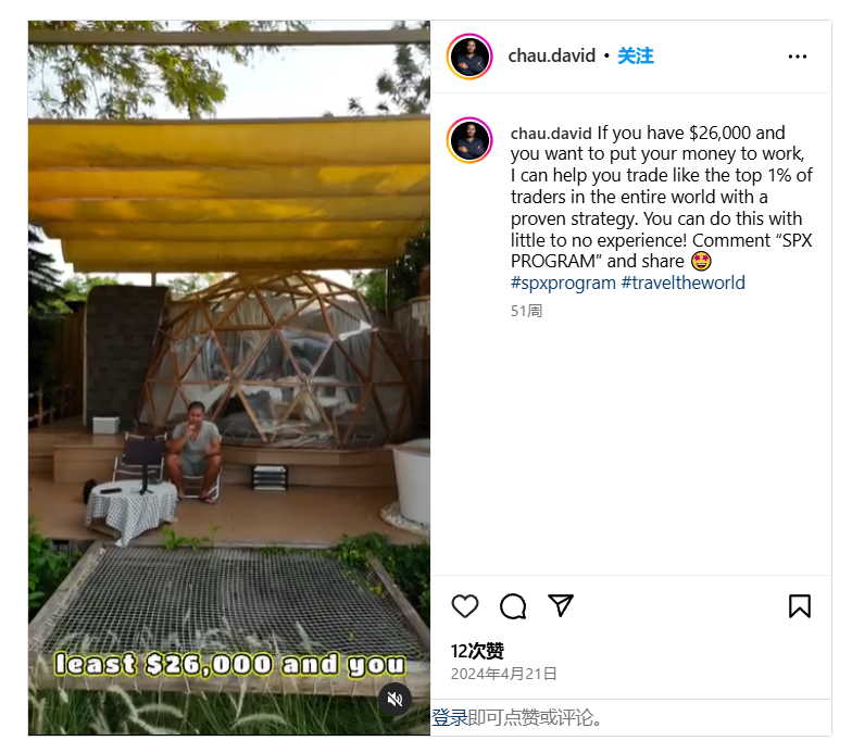 在其他人的争议中,Chau的影响力不断扩大,他在Instgram的粉丝数量已经超过6.6万。SPX Program目前在孵化基金中进行实盘交易,预计将在2024年下半年进行私募发行。